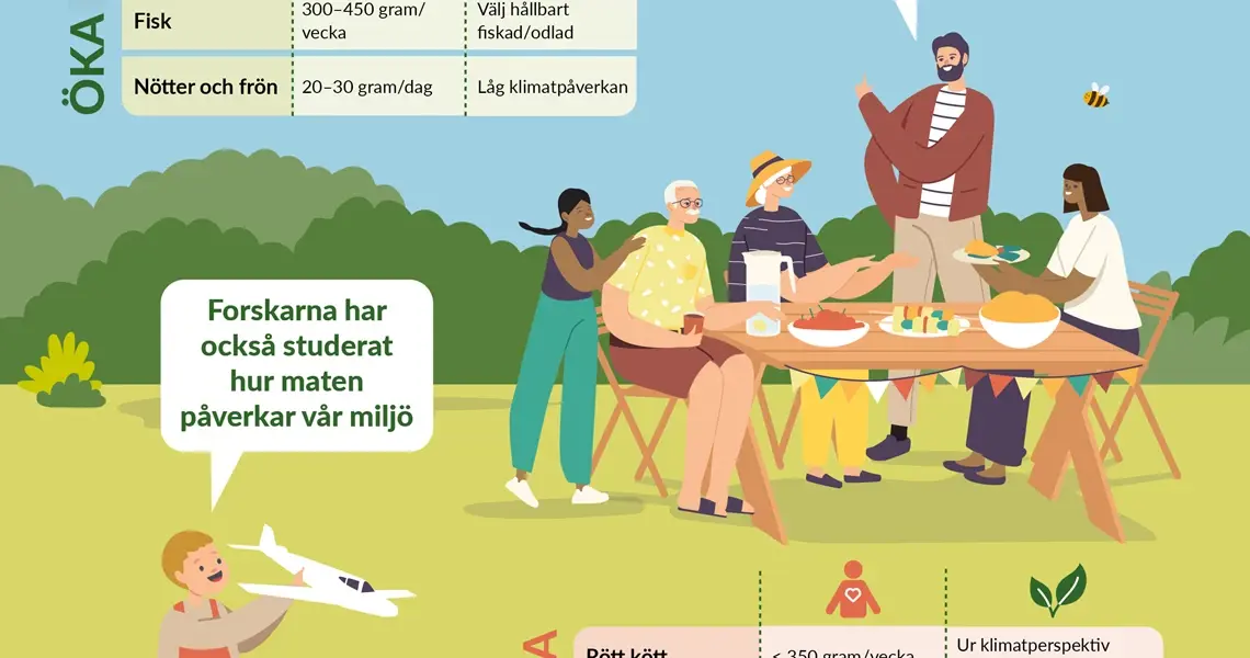 Infografiken om NNR 2023 betonar hur hälsosamma och hållbara matvanor går hand i hand.
