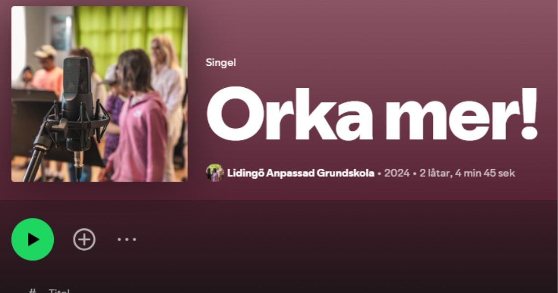Inom ramen för läsårets tema HÄLSA på Lidingö Anpassade Grundskola har elever på skolan skapat låtar. Att uttrycka sig genom musik och textskapande ger fördjupade kunskaper och ökad delaktighet i såväl skolarbetet som i samhället. Låtarna skapades i ett samarbete med elever i musikproduktion på Lidingö Musikskola, där musiken även spelades in och mixades. Välkomna att dansa och sjunga med. Varför inte skapa egna rörelser till musiken? All inspelad musik med Lidingö Anpassad Grundskola finns på Spotify.